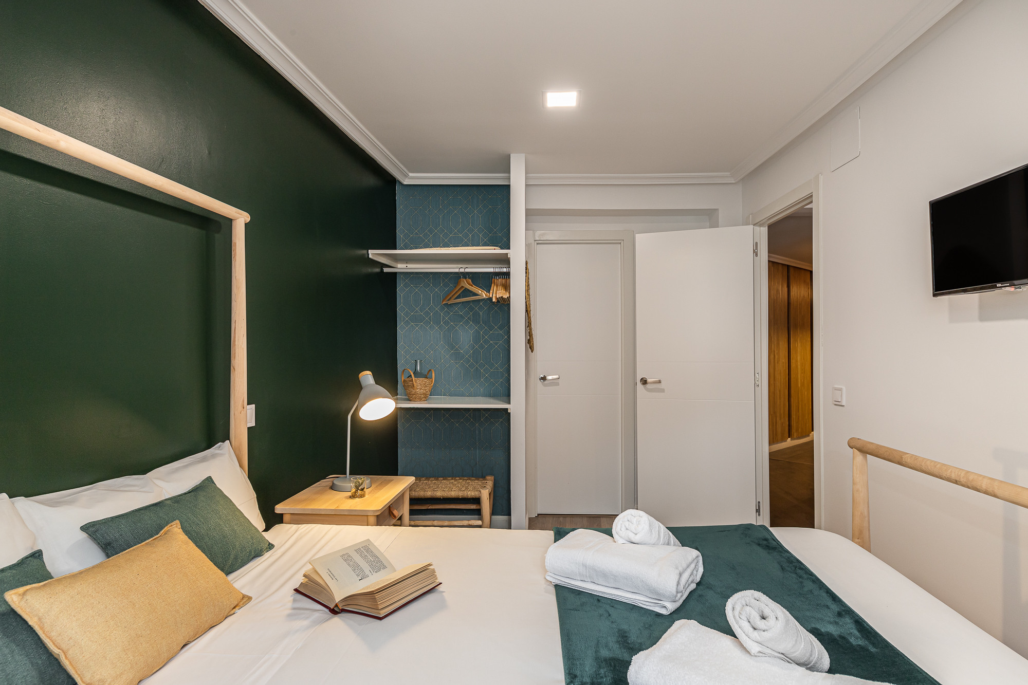 Coqueto y acogedor apartamento de cuatro dormitorios y cuatro baños en suite a un minuto a pie de la Plaza Mayor y a tres minutos de Sol. Además de los cuatro dormitorios con baño en suite privados e independientes, cuenta asimismo con dos zonas comunes: un maravilloso salón-comedor y una pequeña cocina para necesidades básicas.