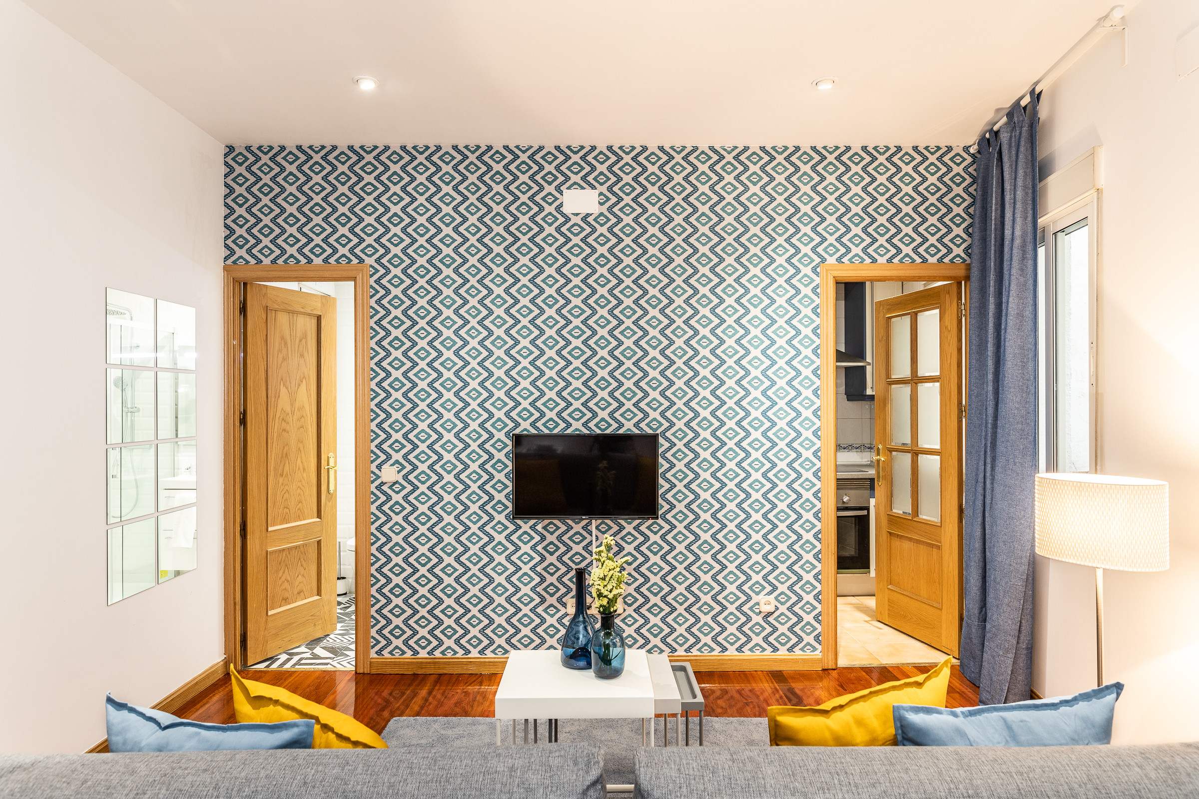 El apartamento consiste en un amplio salón-comedor con son sofá-cama doble y cocina americana, ésta con todo el equipamiento necesario. En otras estancias, un baño completo y un dormitorio con cama doble. Por lo tanto, una capacidad total de cuatro personas. Este apartamento es el ideal para tus temporadas en Madrid