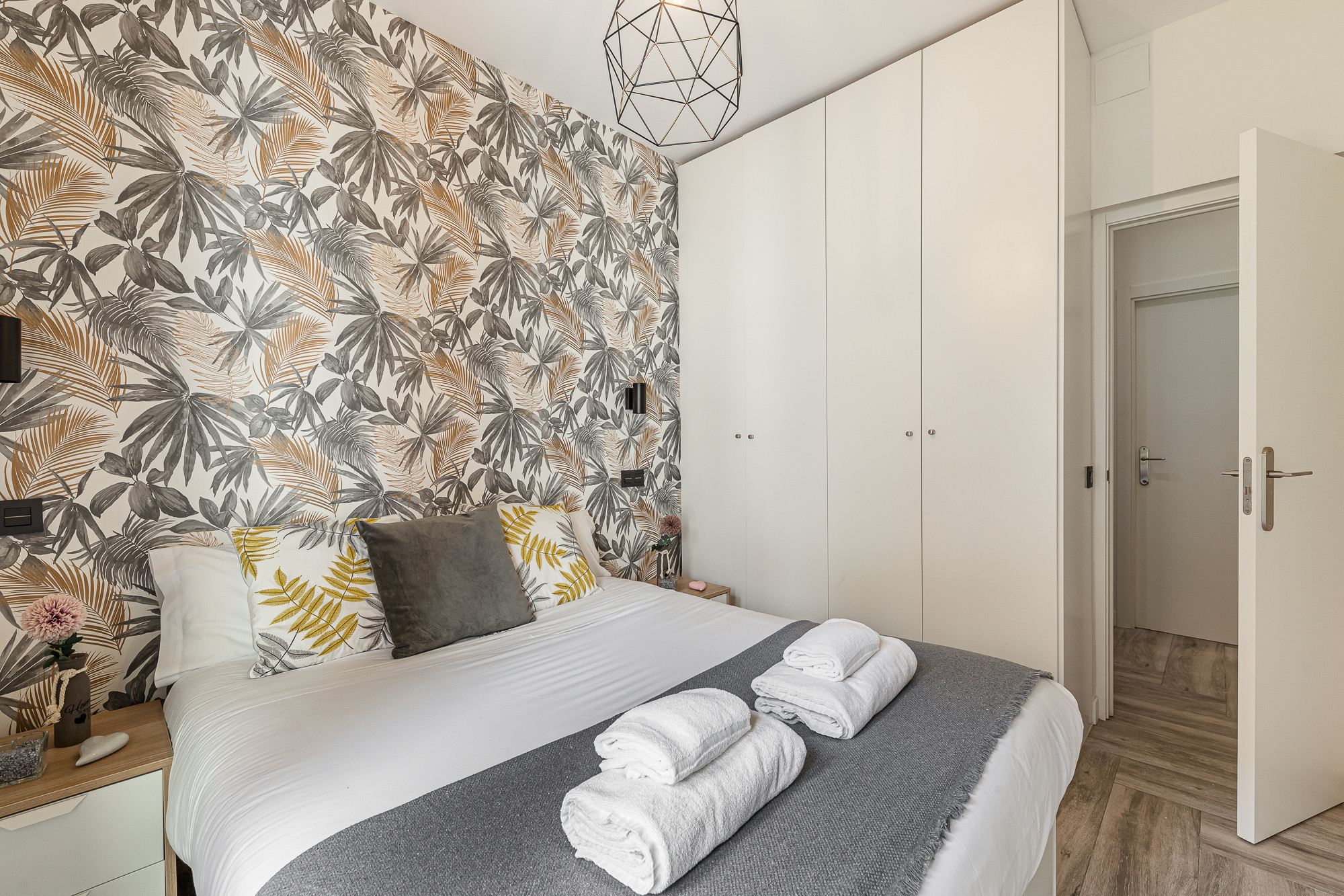 El apartamento consta de salón con cocina americana, dos dormitorios –ambos con cama doble- y un baño. La cocina se encuentra equipada en su totalidad. Tanto los dormitorios como el resto del apartamento cuentan con espacio y armario suficientes para todas las necesidades de almacenaje. Perfecto para cuatro personas.