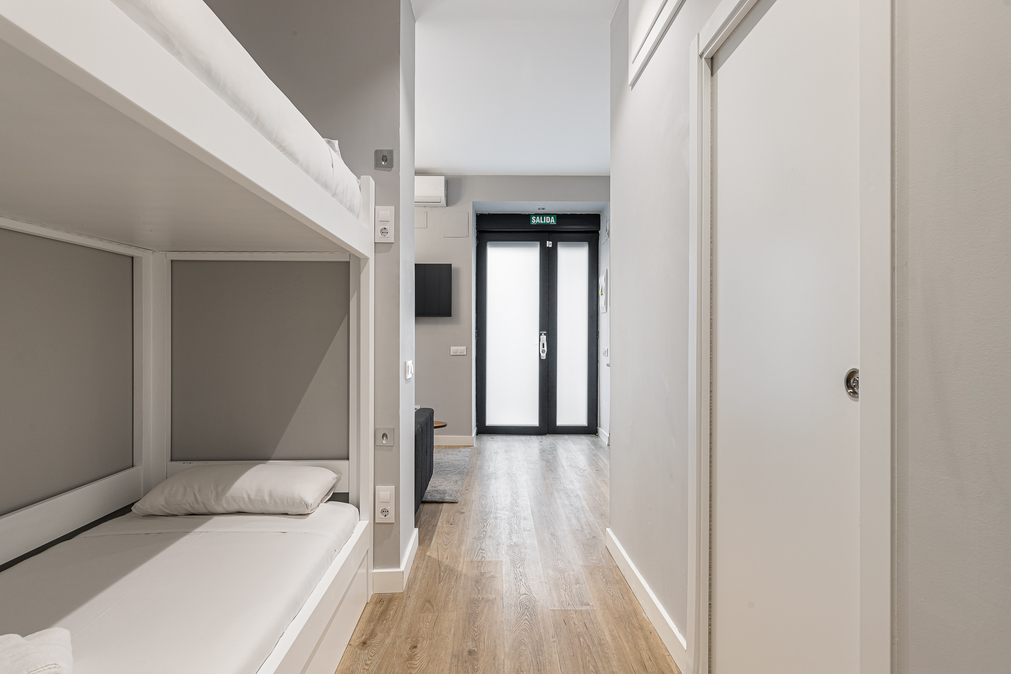 Coqueto estudio emplazado en el barrio castizo por antonomasia del centro de la capital, La Latina, a escasos metros de la Plaza Mayor y la Puerta del Sol. Completamente equipado, cuenta con un dormitorio con cama doble y baño en-suite, dos camas individuales en litera de carpintería, un segundo baño, salón y una cocina americana. Asimismo, cuenta con un patio interior amueblado con mobiliario de exterior.