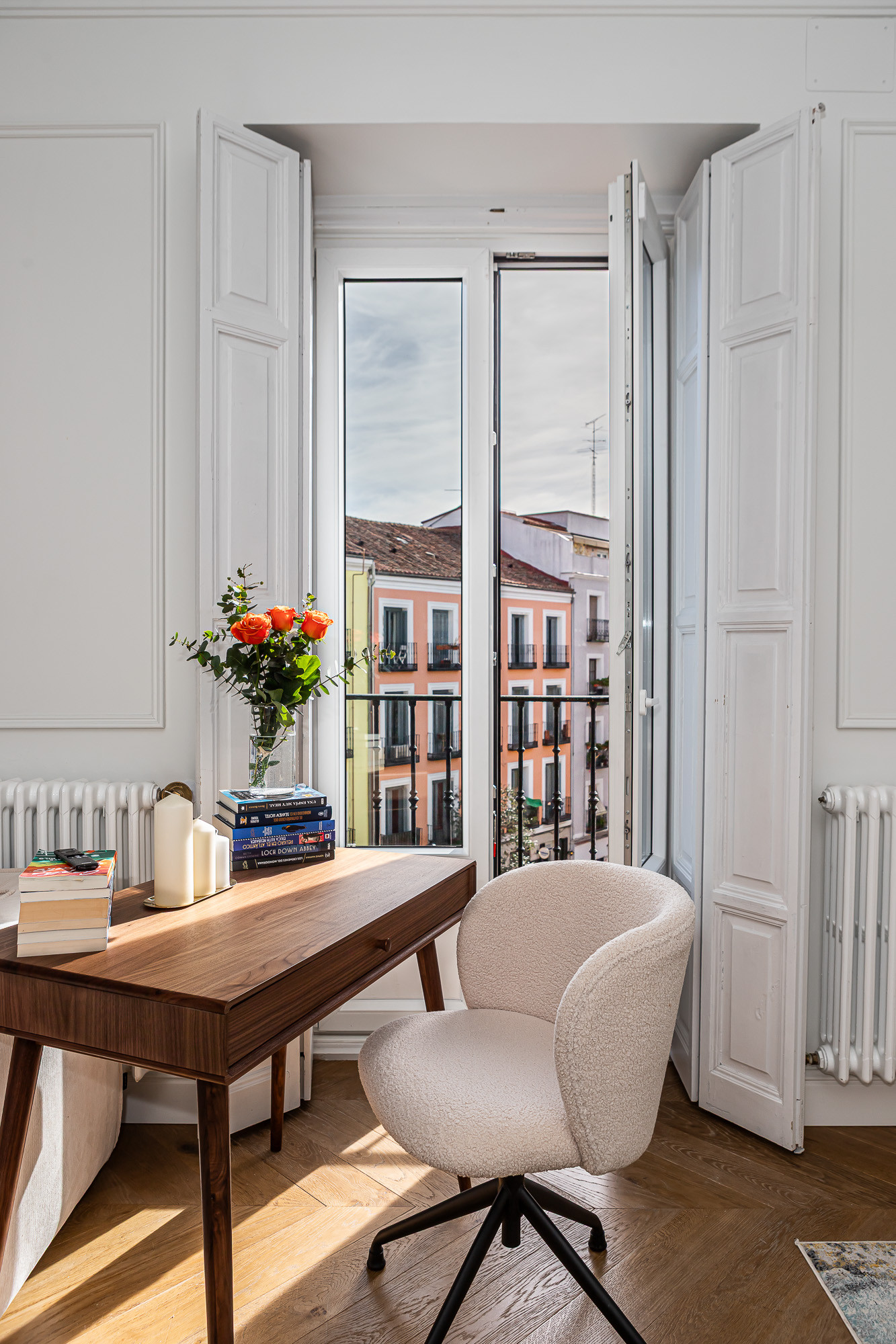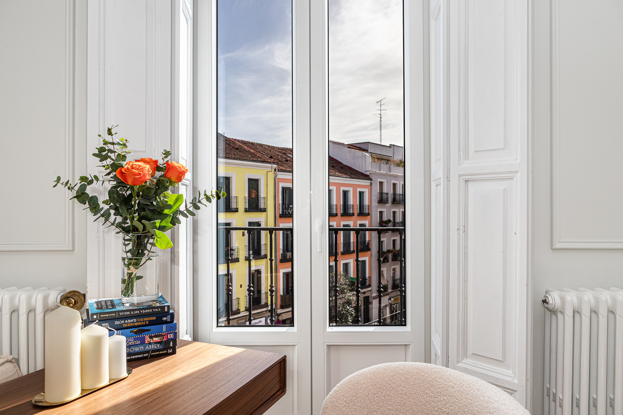 Un balcón luminoso te permitirá disfrutar de las vistas del animado barrio de Malasaña, un lugar lleno de vida, arte y cultura. El apartamento no permite mascotas ni fumar, y es ideal para trabajadores y nomadas digitales. No dispone de ascensor.
