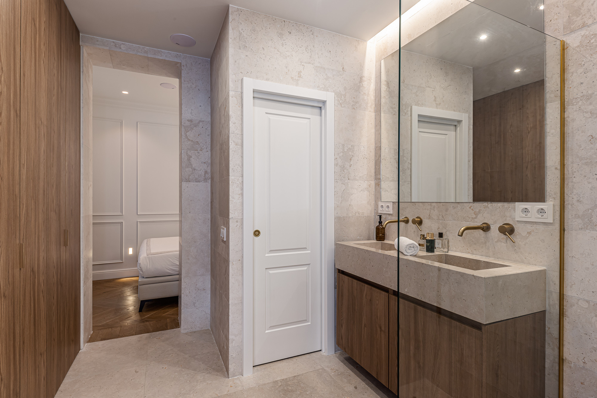 El apartamento cuenta con dos dormitorios amplios, cada uno equipado con una cama doble, ideal para descansar después de un día explorando la ciudad. Dispone de dos baños completos con ducha, proporcionando comodidad y privacidad a todos los huéspedes.