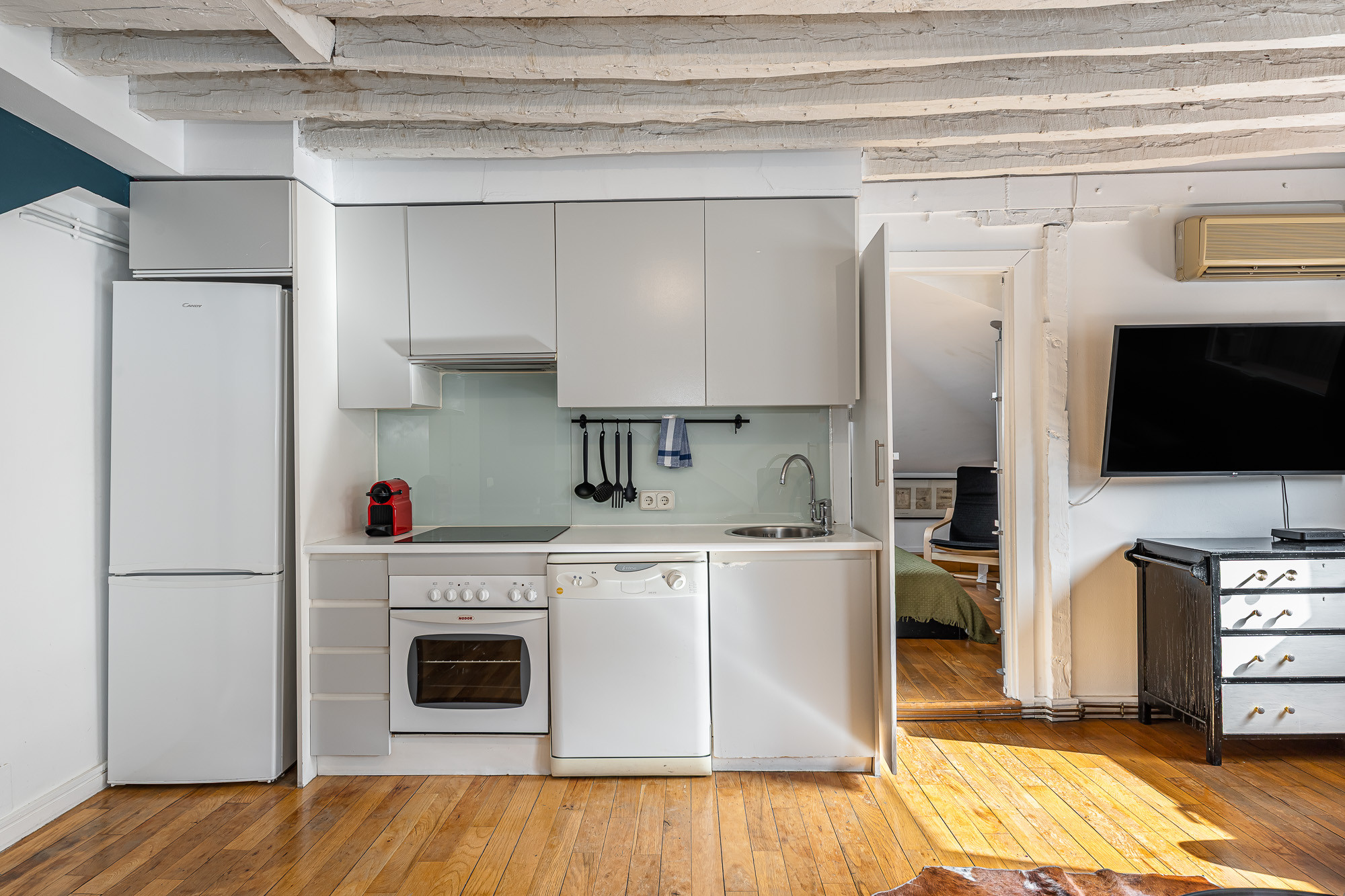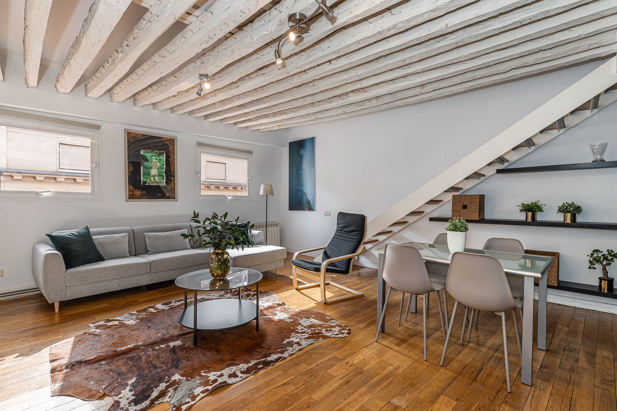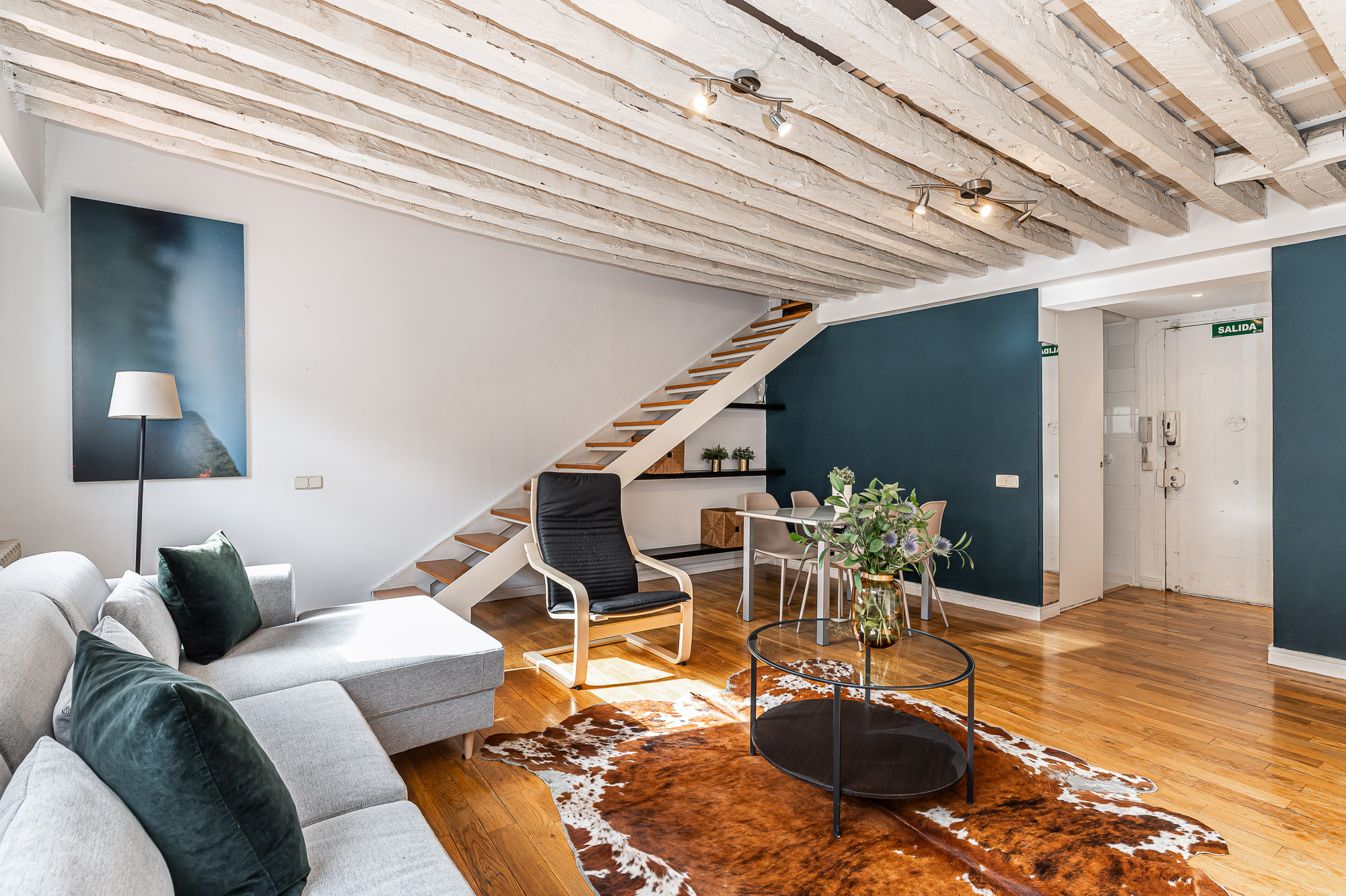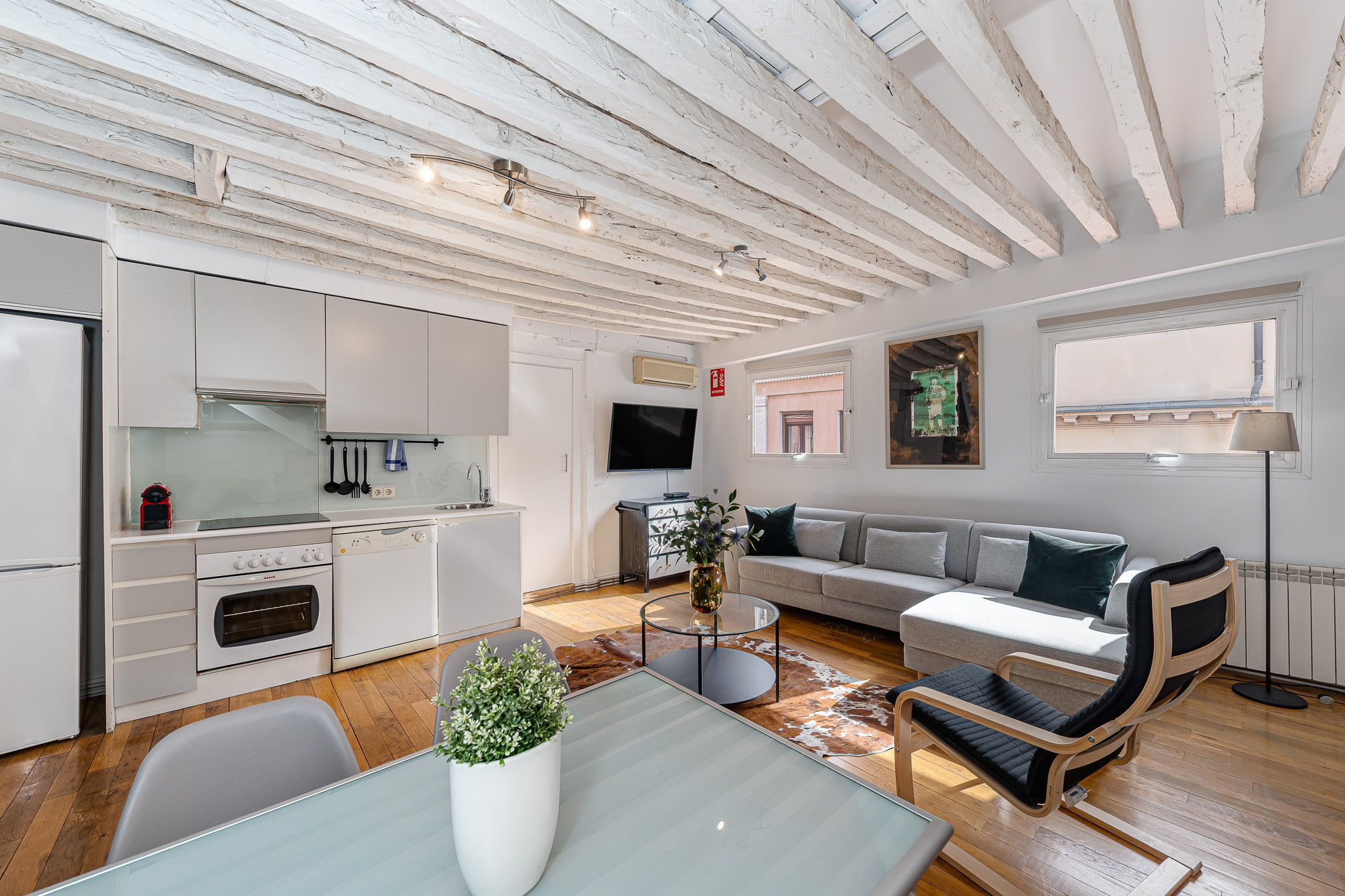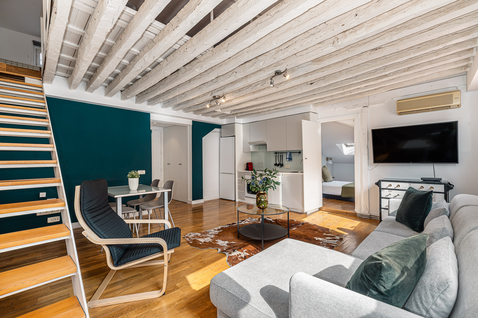Estupendo ático dúplex situado a escasos metros de la emblemática Plaza del Sol de Madrid (1 min), Plaza Mayor (5 min) y Ópera (5 min), un gran nodo de transporte para moverte por la ciudad.