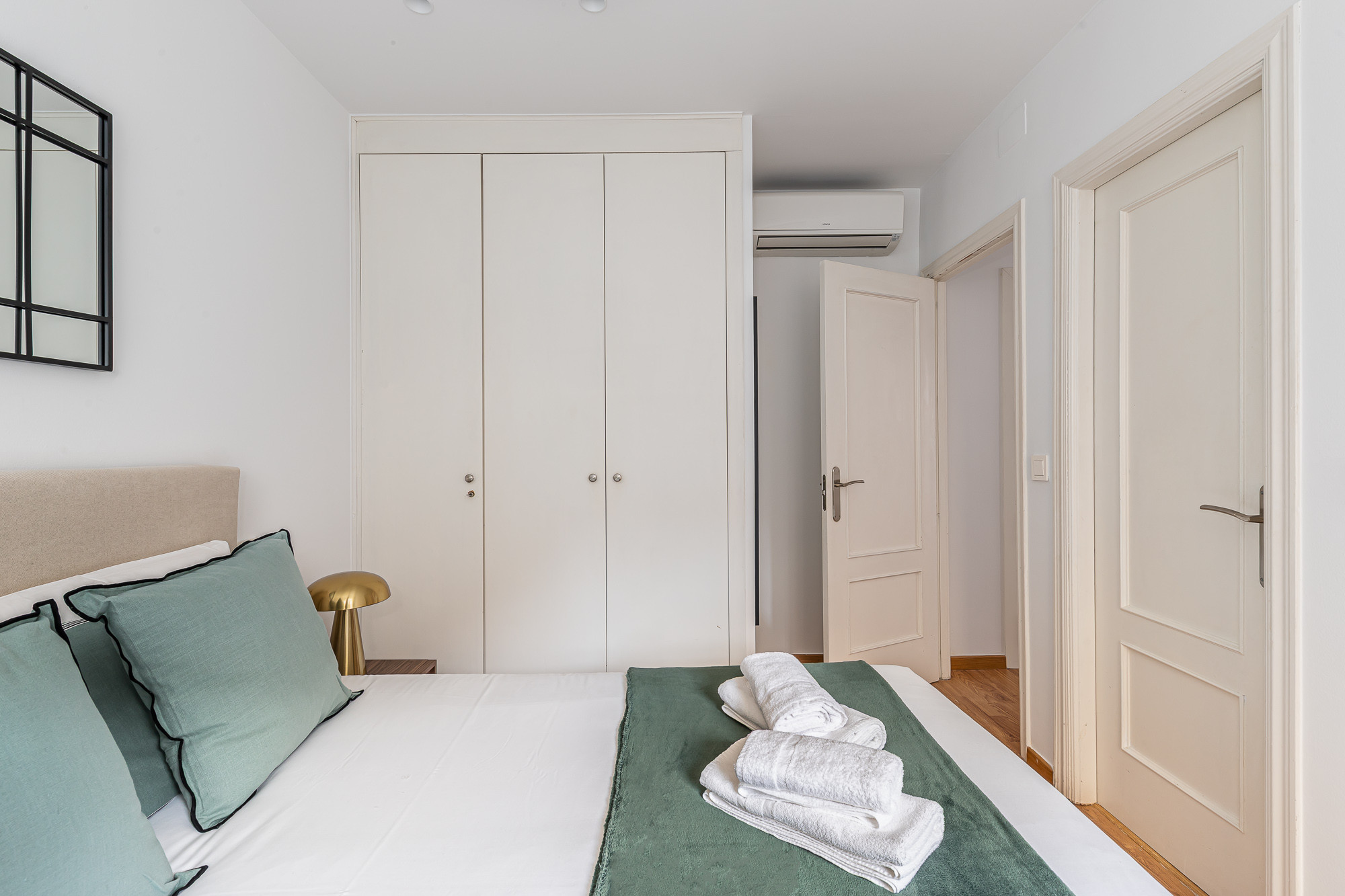 El apartamento cuenta con un dormitorio elegantemente equipado que incluye una cama doble y un sofá-cama adicional, permitiendo alojar hasta 4 personas con total comodidad. Dispone de aire acondicionado y calefacción por bomba de calor para garantizar tu confort en cualquier época del año.