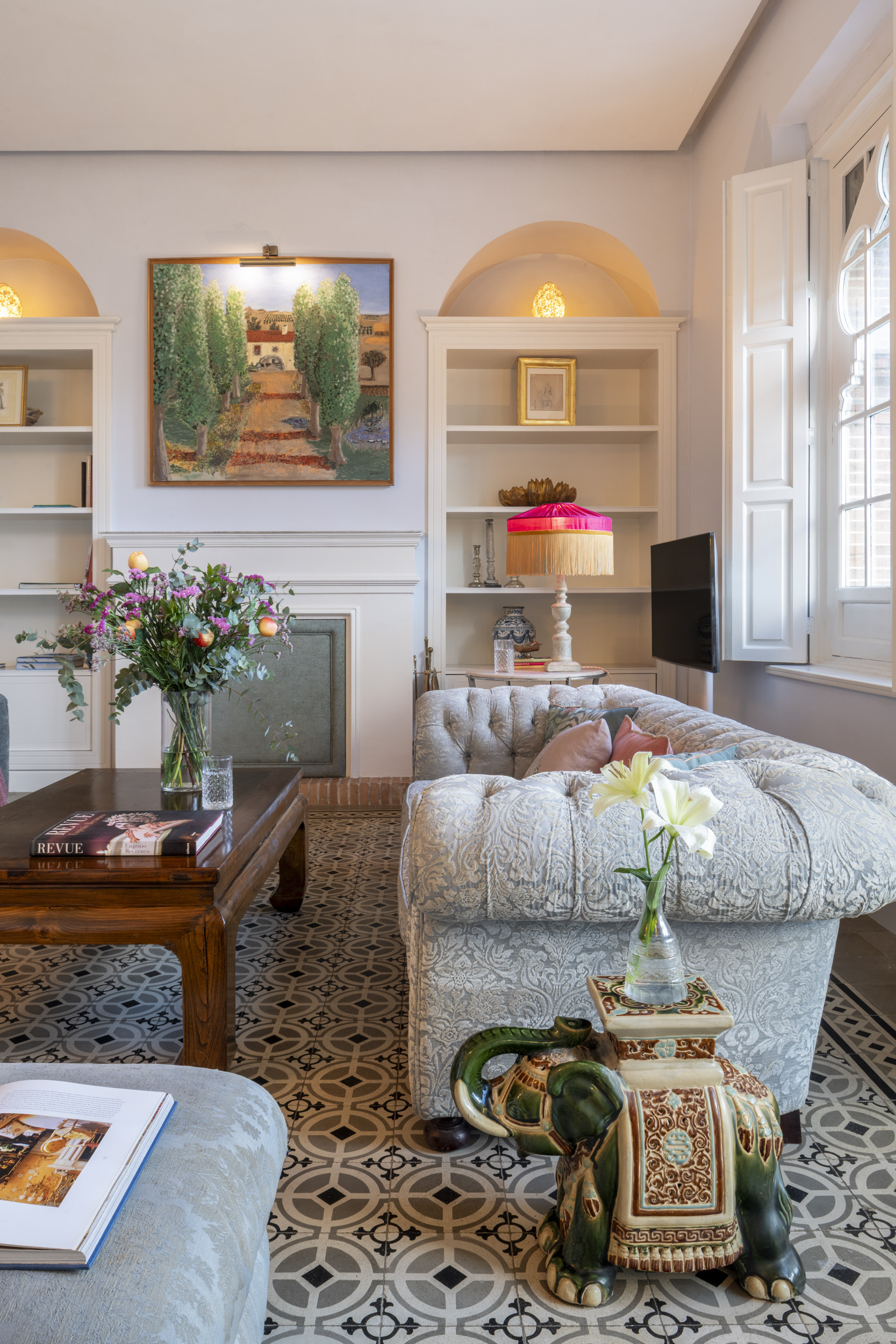 En pleno centro de Sevilla, en el barrio del Arenal, dentro de un edificio histórico firmado por Aníbal González, esta vivienda combina el encanto del regionalismo sevillano con una puesta en escena sofisticada y muy cuidada. Techos altos, arcos, luz cálida, suelos con carácter y una estética que respira autenticidad sin renunciar a la comodidad.