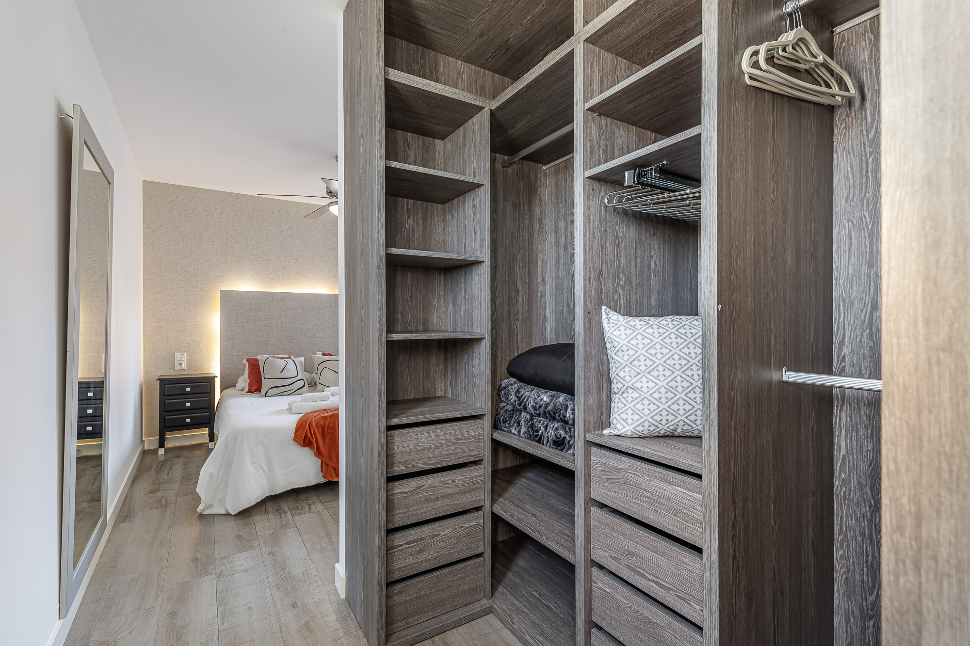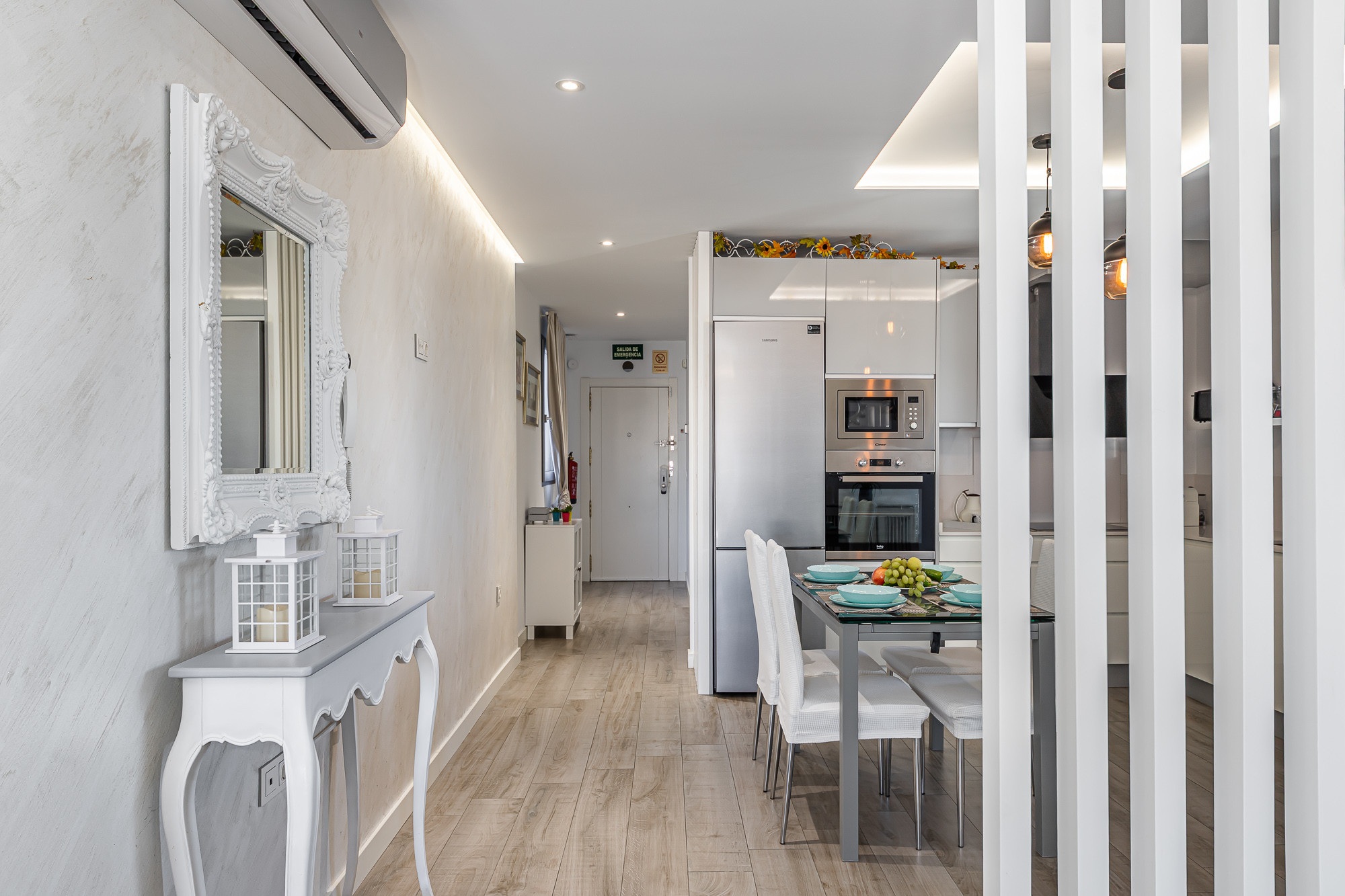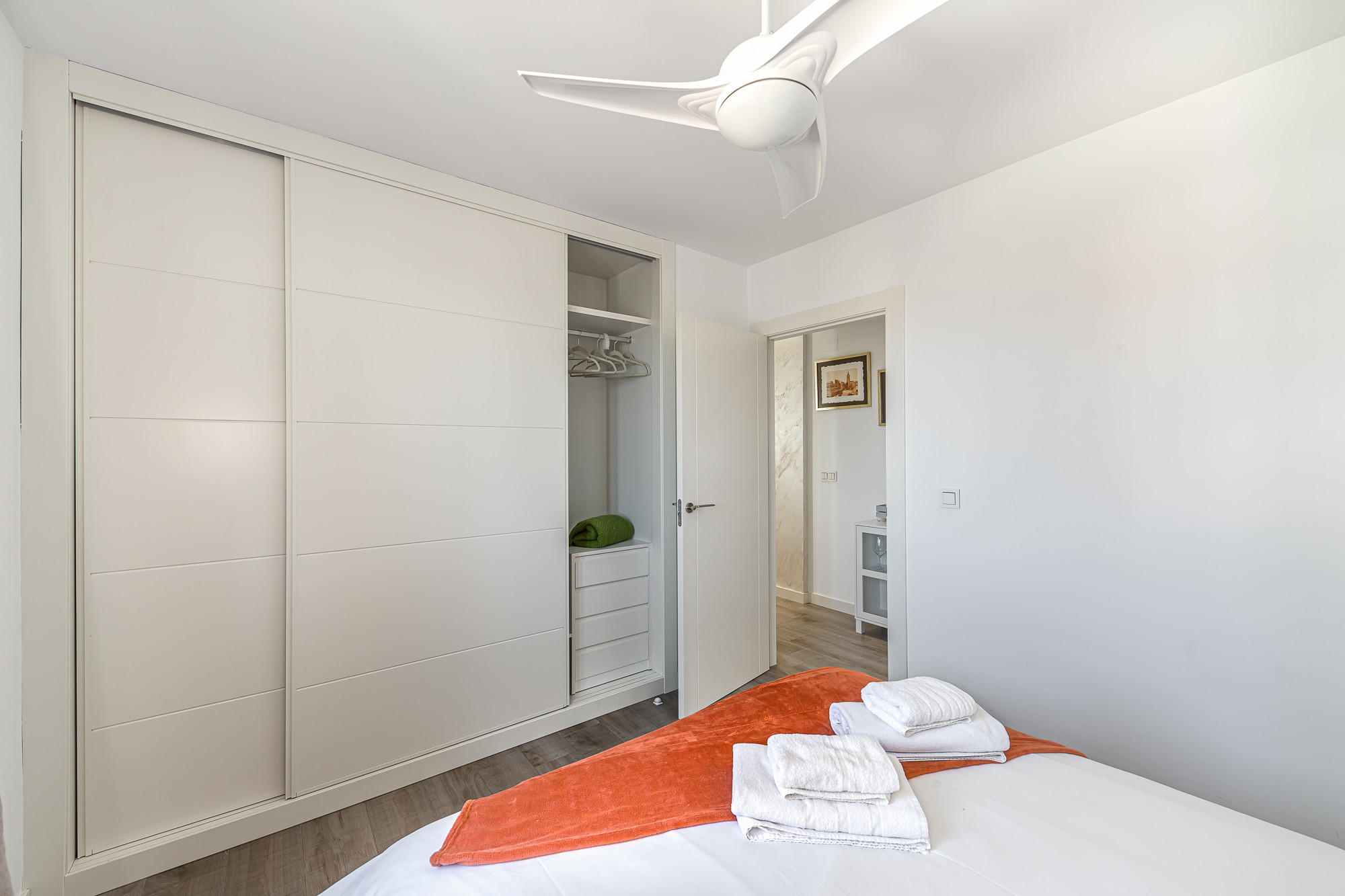 The apartment consists of a living room and a fully equipped open-plan kitchen for all your needs. It has two bedrooms, both with double beds and one of them also with a tv and a dressing room. Apart from the AC system, all rooms have a celing fan. A bathroom equipped with a shower completes the accommodation.