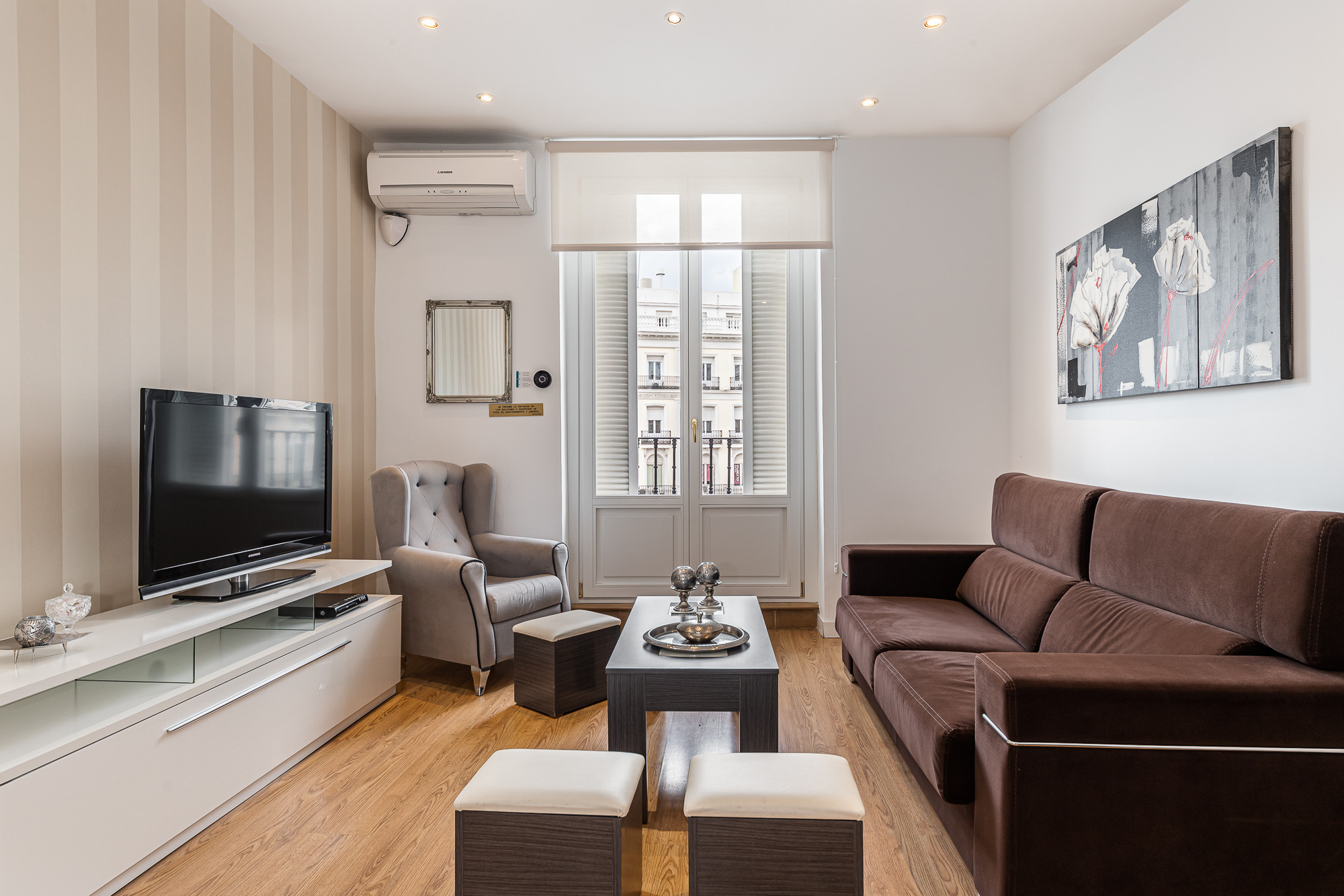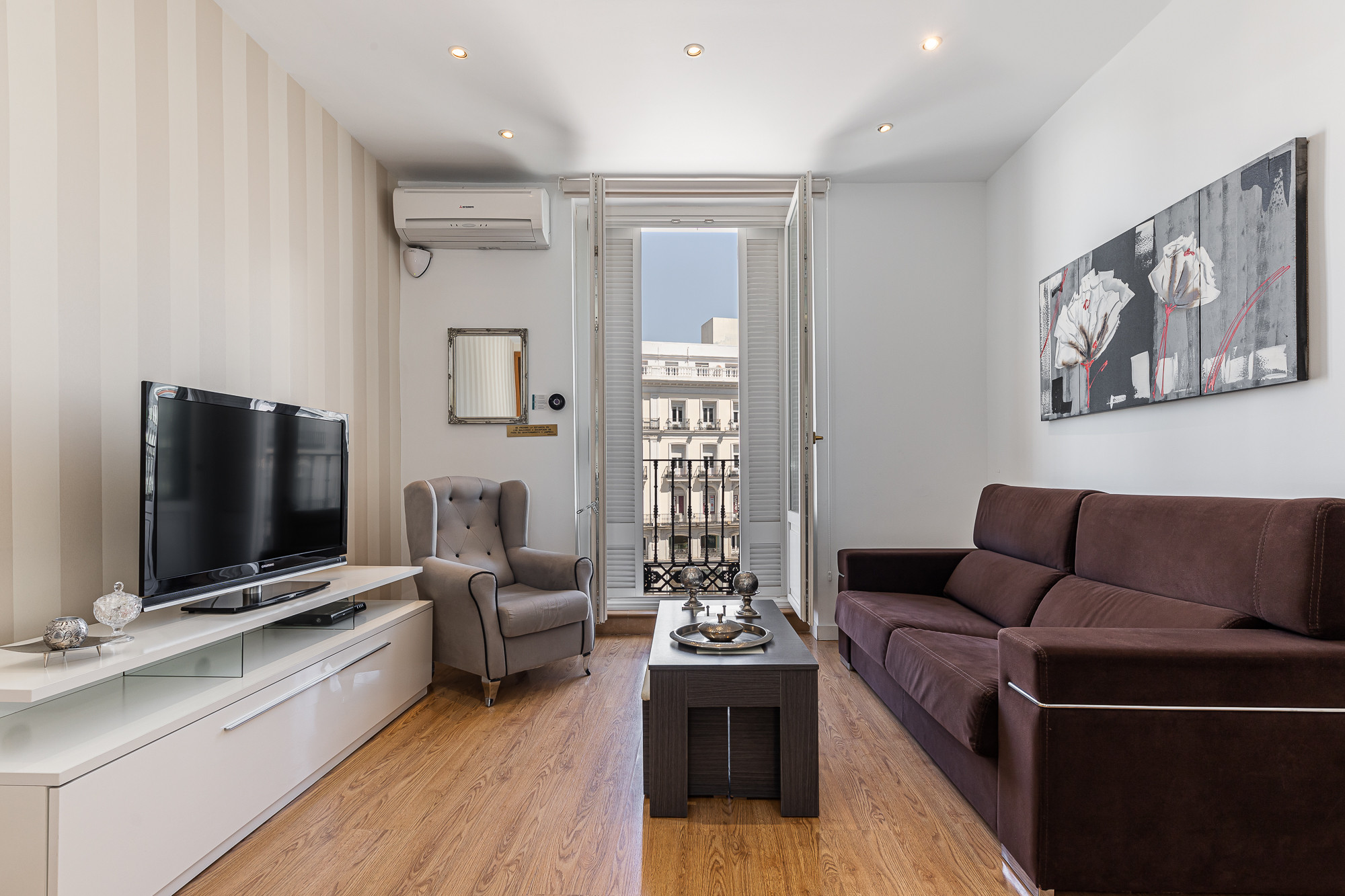 The apartment consists of a living-dining room with a sofa bed and a balcony facing the Plaza de la Puerta del Sol in Madrid. It also has an open-plan kitchen that has all the necessary equipment to enjoy your stay to the fullest. It also has a bedroom with a double bed and a bathroom. Capacity for four people.
