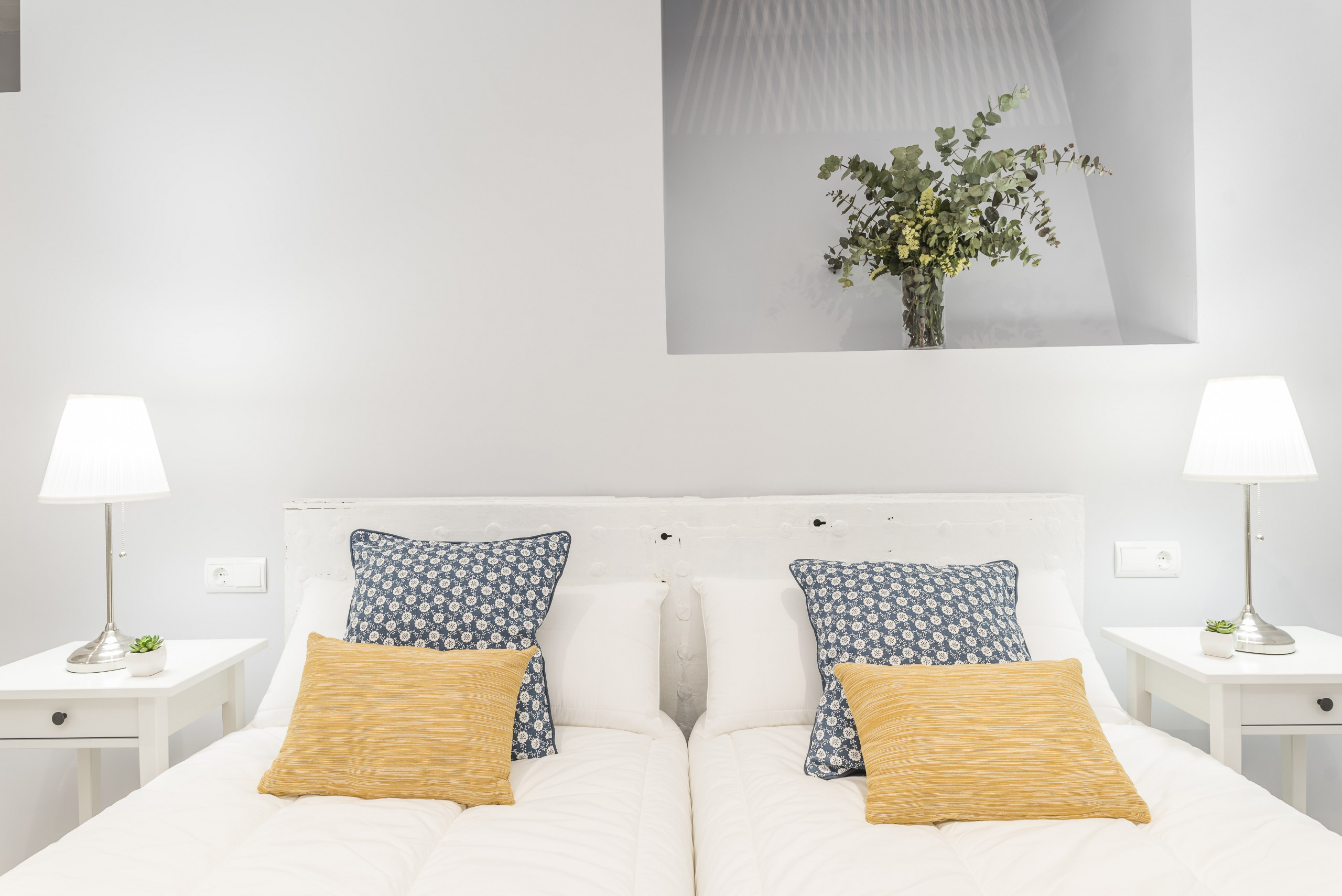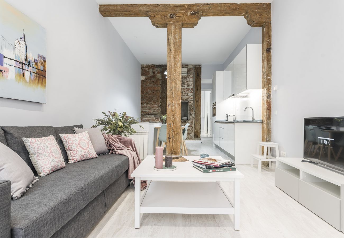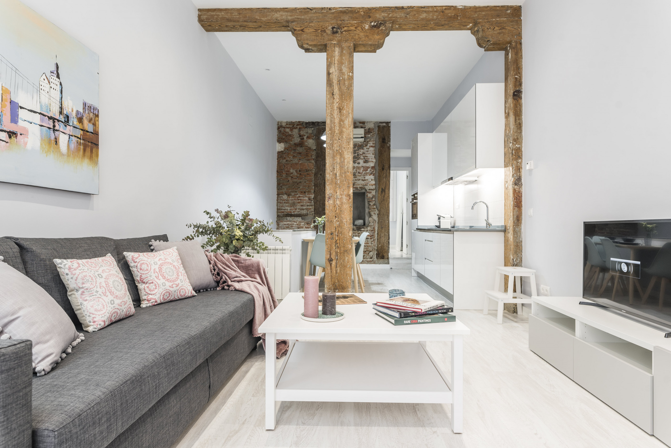 Impressive design apartment located in the quintessential traditional neighborhood of the city center, La Latina, just a few meters from Plaza Mayor and Puerta del Sol. Fully equipped, it features 2 bedrooms, one with a double bed and another with two single beds, a living room, two spacious bathrooms, a living-dining room with sofa bed and American-style kitchen.