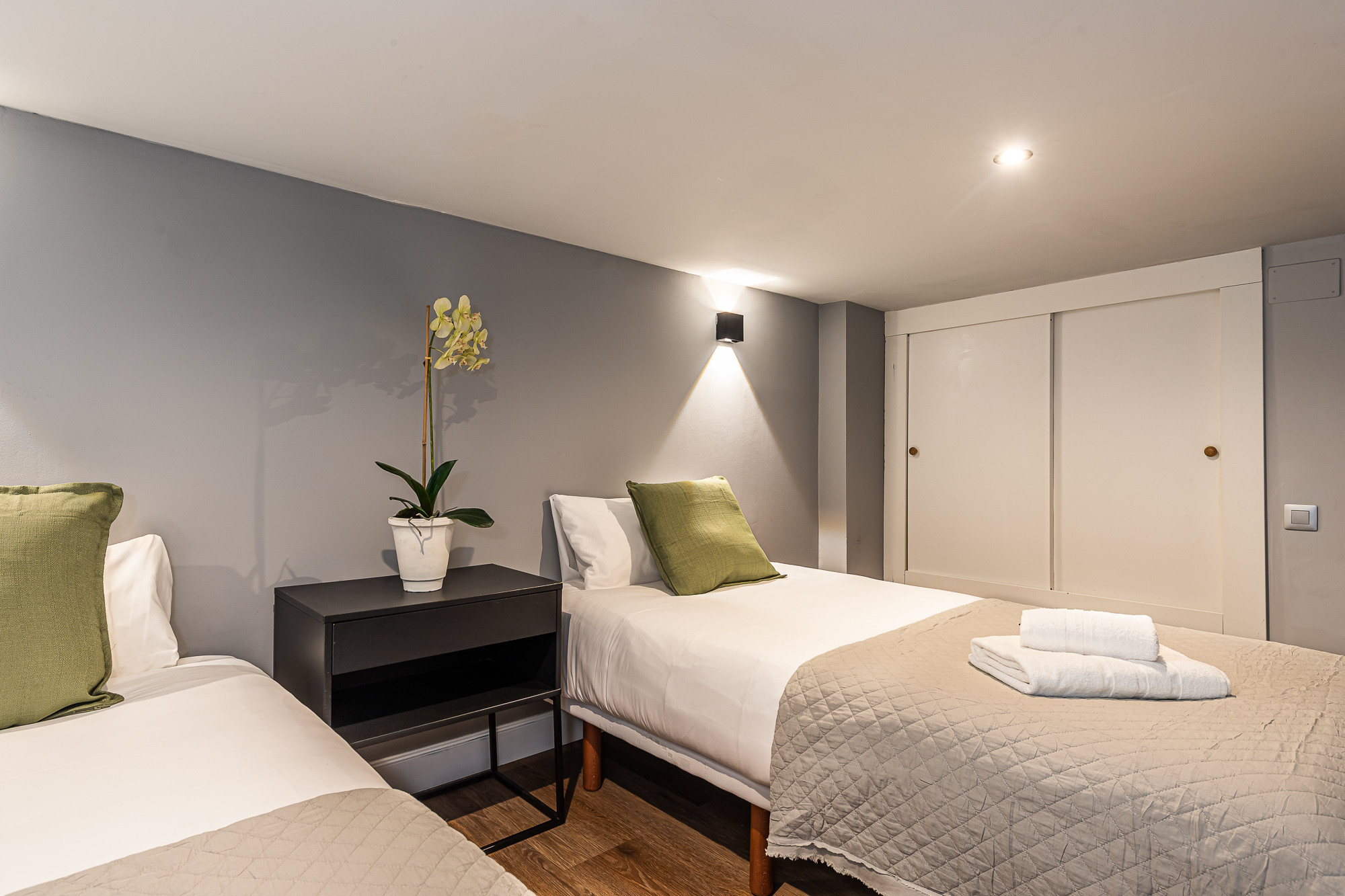 On the lower level, the main bedroom features a double bed, walk-in closet and en-suite bathroom, offering a more private and peaceful setting.