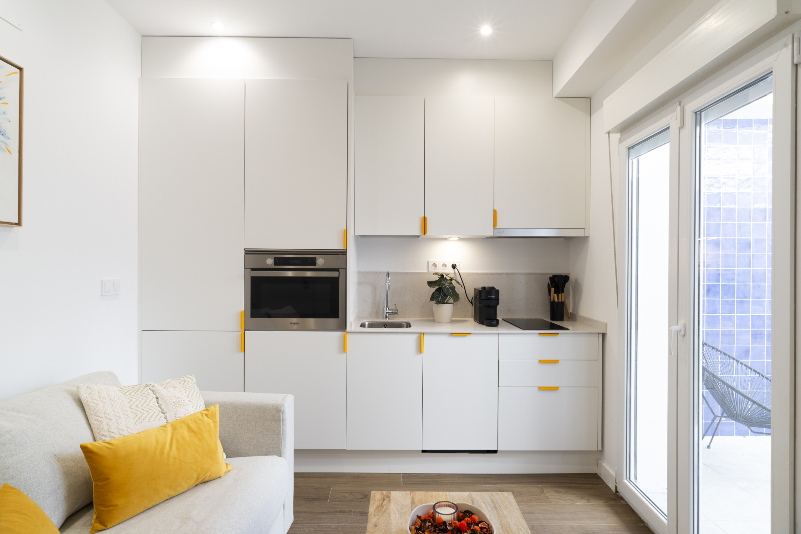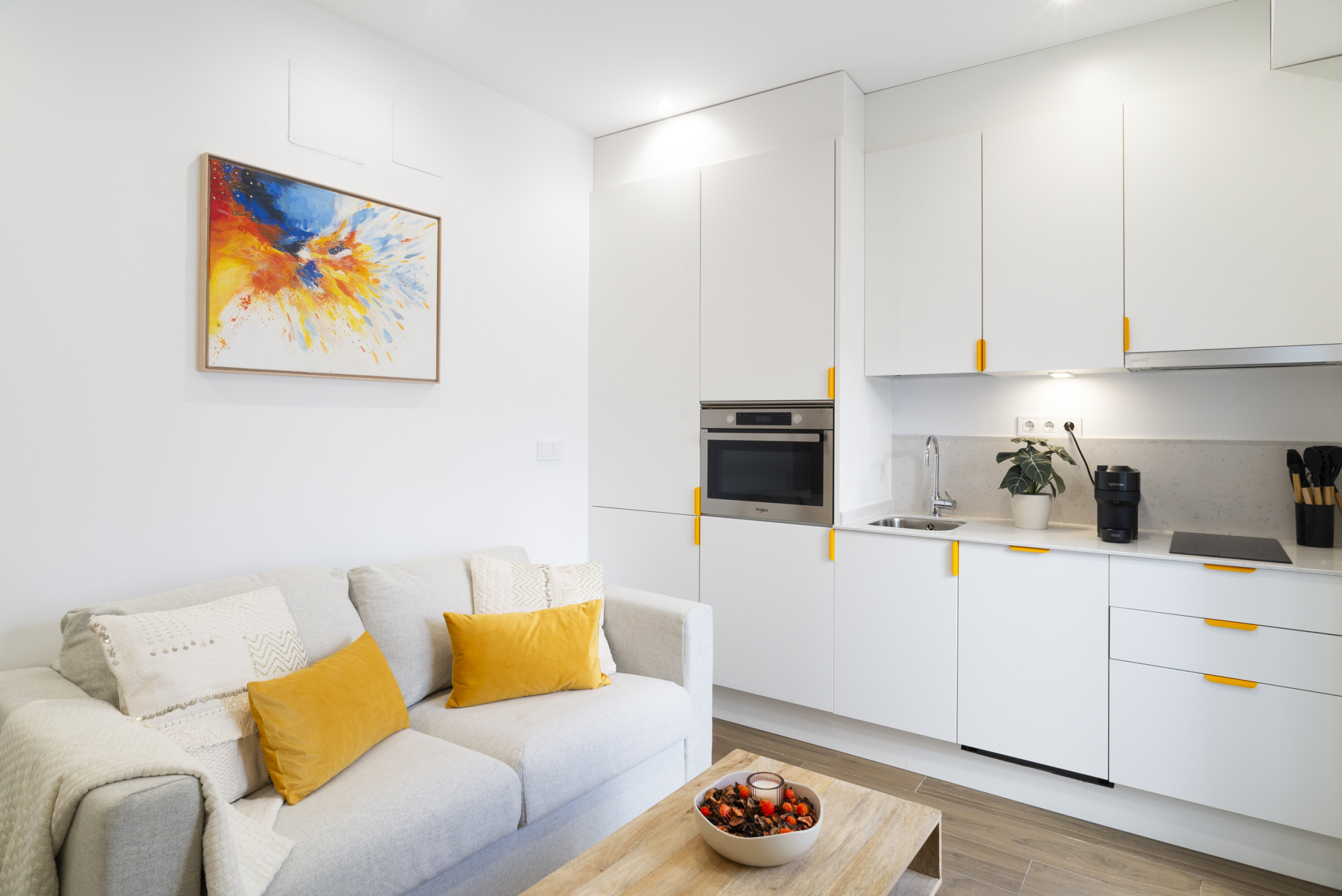 The space has an intelligent distribution that maximises every corner. It features a comfortable double bed that guarantees relaxing rest, and a complete bathroom with a shower. The American kitchen is fully equipped with modern appliances such as a fridge, washing machine, oven, microwave, coffee maker, toaster and other essential utensils for preparing delicious meals.