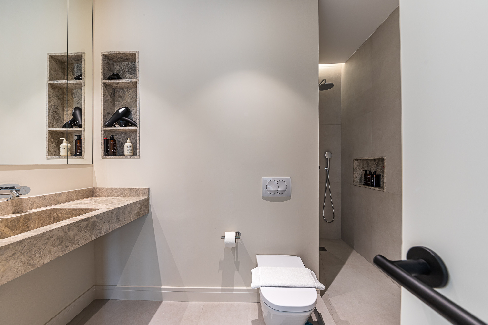 It consists of three en-suite bedrooms, one of them with a double bed and the other with two single beds. One bathroom more completes the space. A big living-dining room with an open-plan kitchen completes the impressive accommodation.