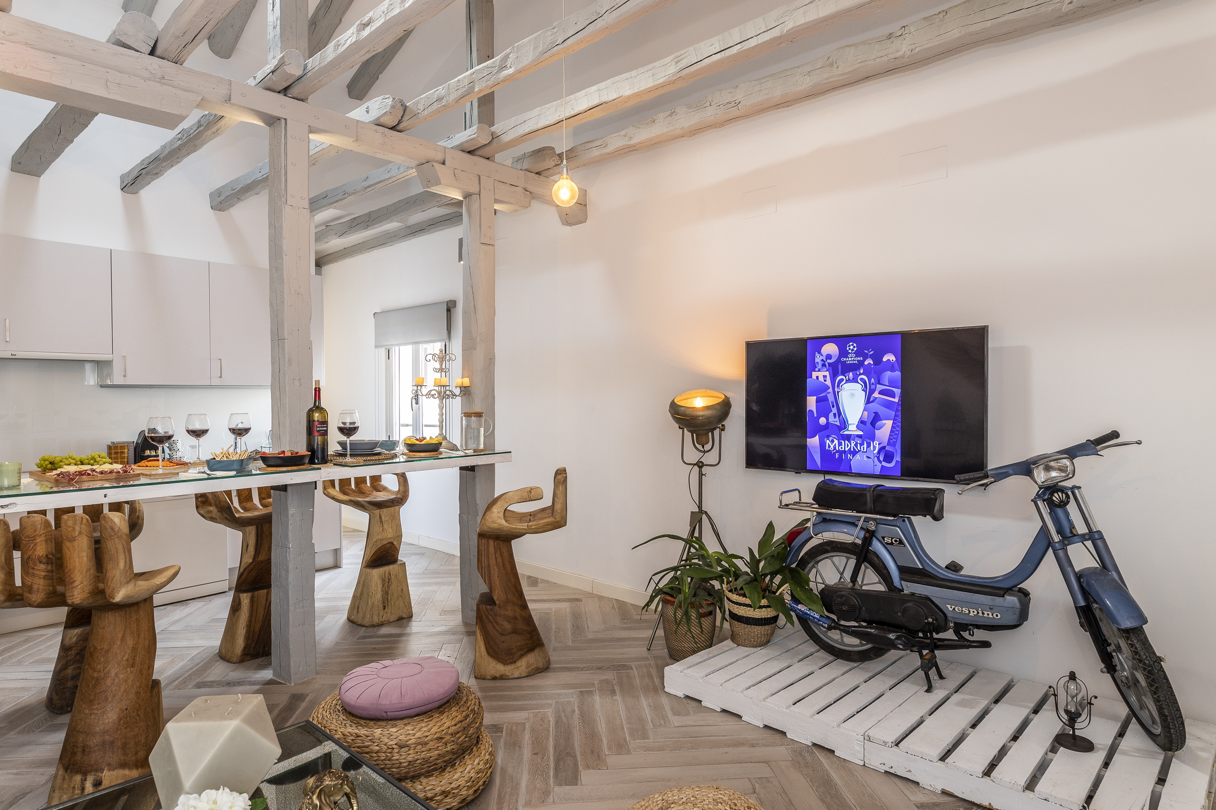 Stunning apartment located in an amazingly well convenient area, in the heart of Malasaña neighborhood, five minutes’ walk from Gran Via and ten from Chueca neighborhood. Just in the city center.