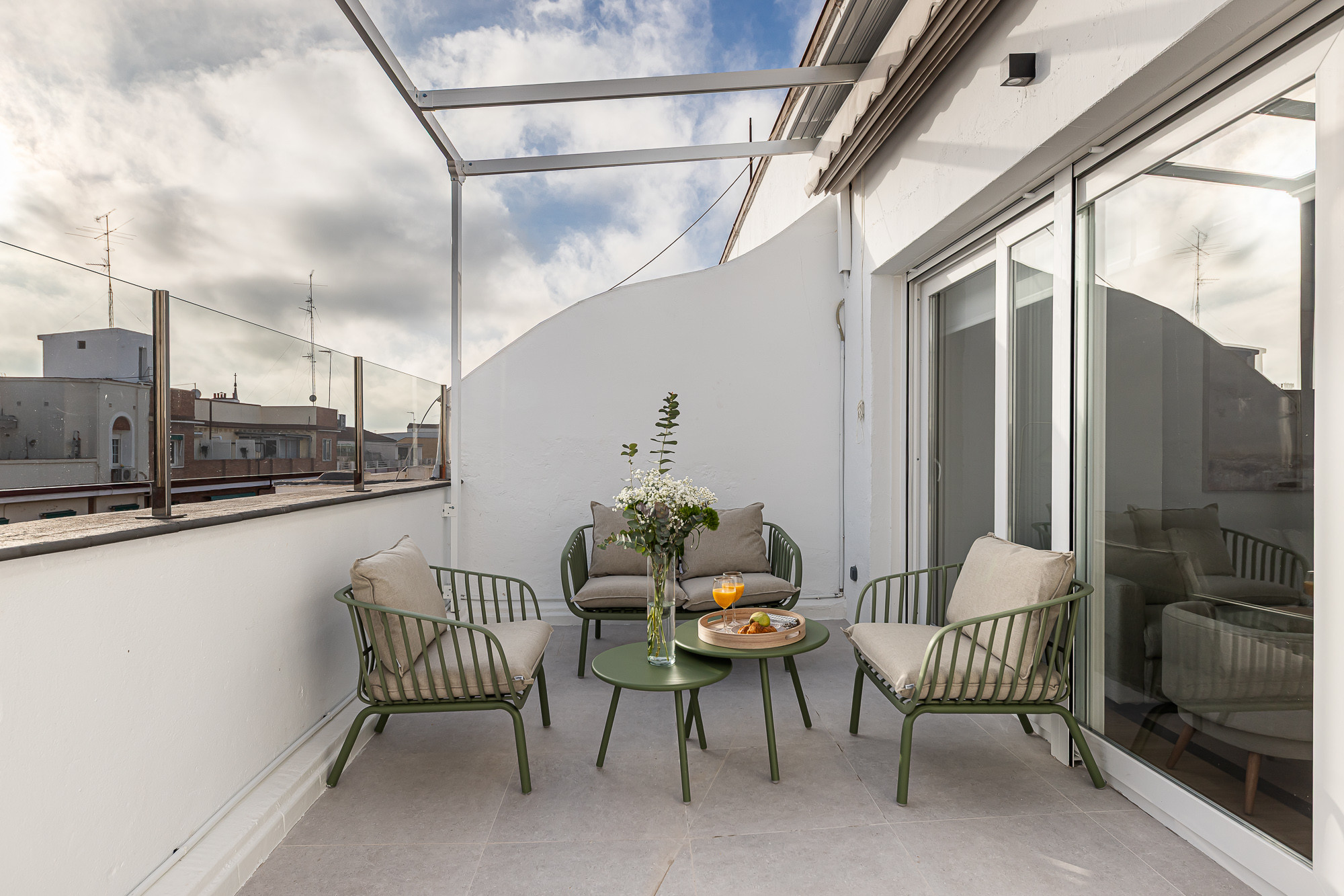 • An elegant and cozy living room that opens onto a wonderful private terrace, ideal for relaxing outdoors or enjoying pleasant gatherings.