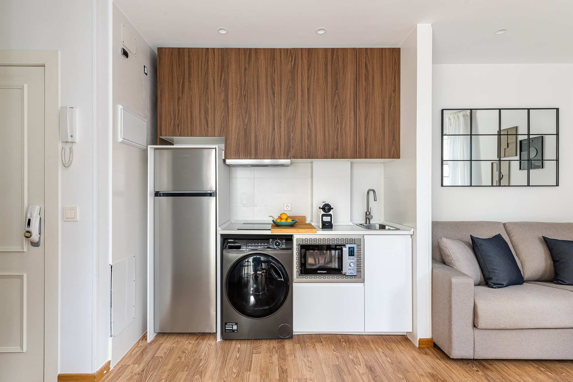 The apartment features an elegantly equipped bedroom that includes a double bed and an additional sofa bed, allowing accommodation for up to 4 people with total comfort. It has air conditioning and heat pump heating to ensure your comfort in any season of the year.