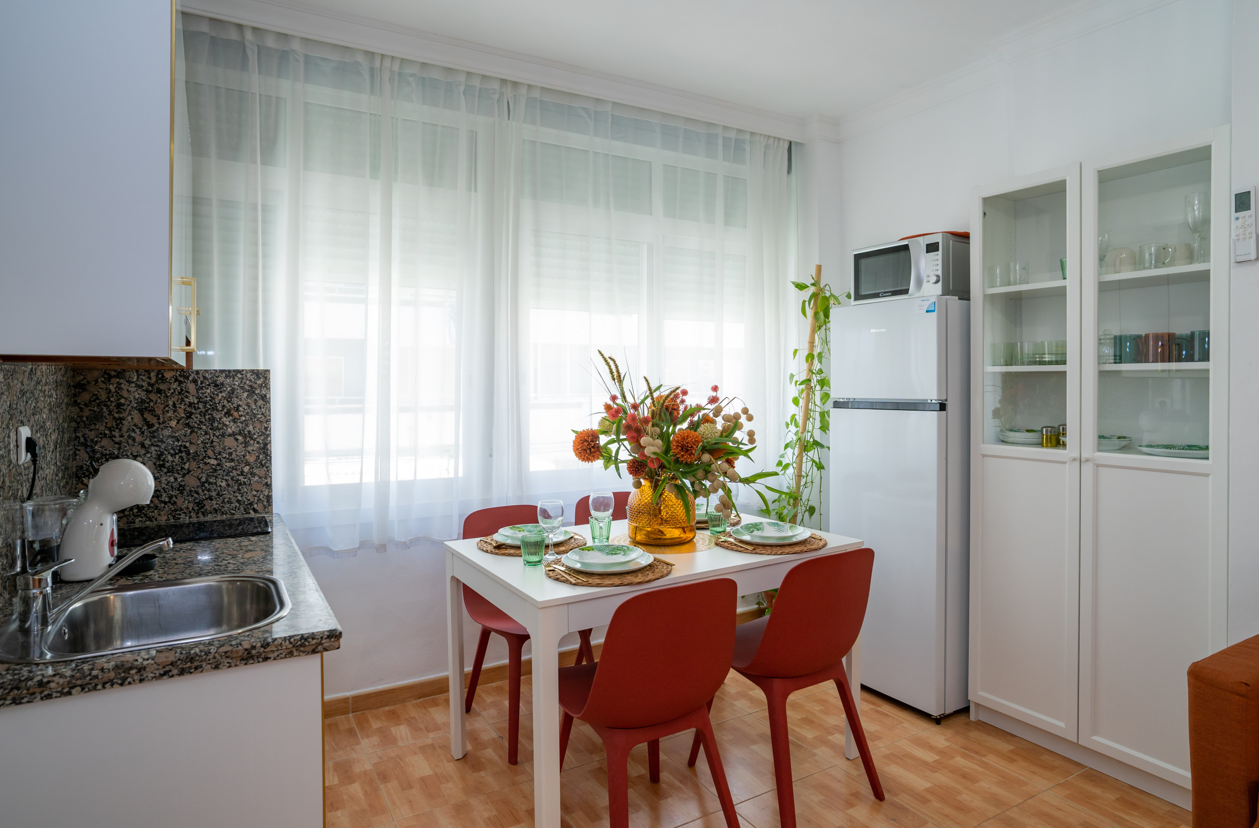 Its location is excellent: just 10 minutes walking to the beach and only 8 minutes walking to La Nogalera, the lively area with restaurants, bars, and nightlife.