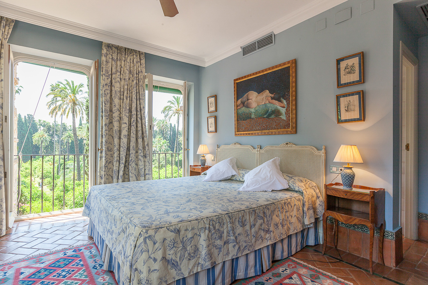 The "Tower Room" is a bright and elegant space where classic Sevillian charm blends harmoniously with contemporary comfort. Its large windows open directly onto the Gardens of the Royal Alcázar, offering a view so close it feels as though you were inside them. A serene and intimate retreat, ideal for those seeking an exclusive experience in the heart of Seville.