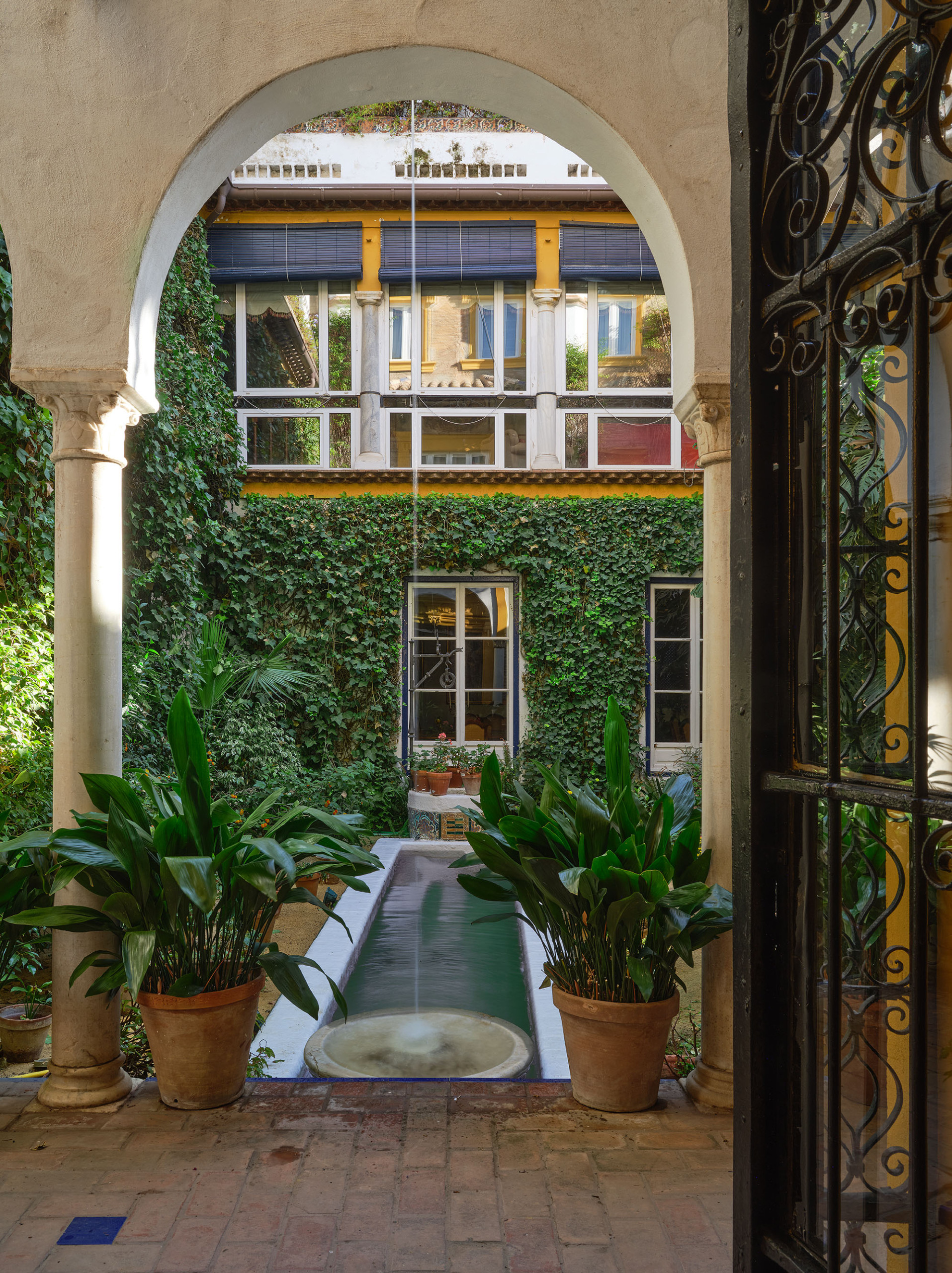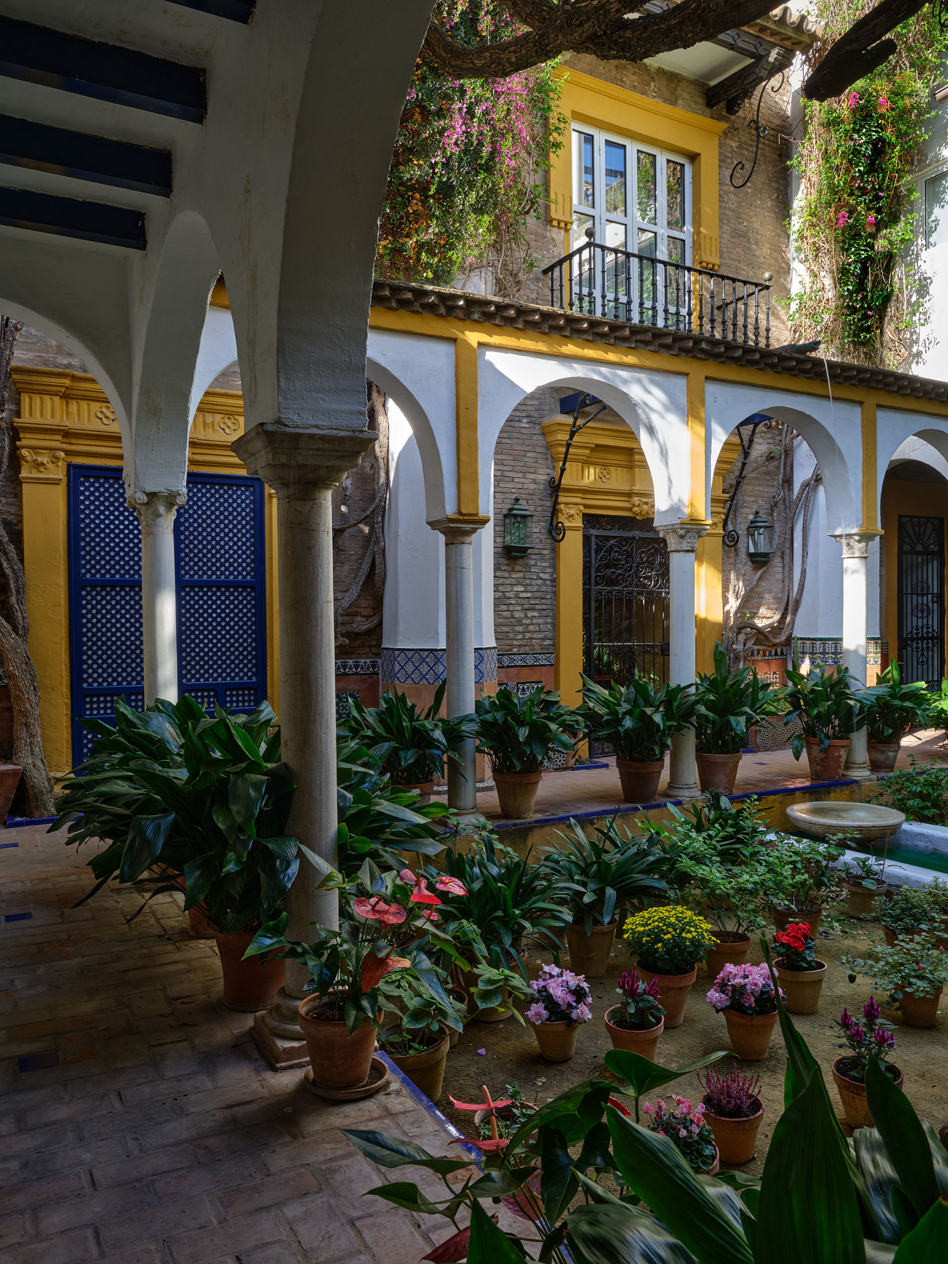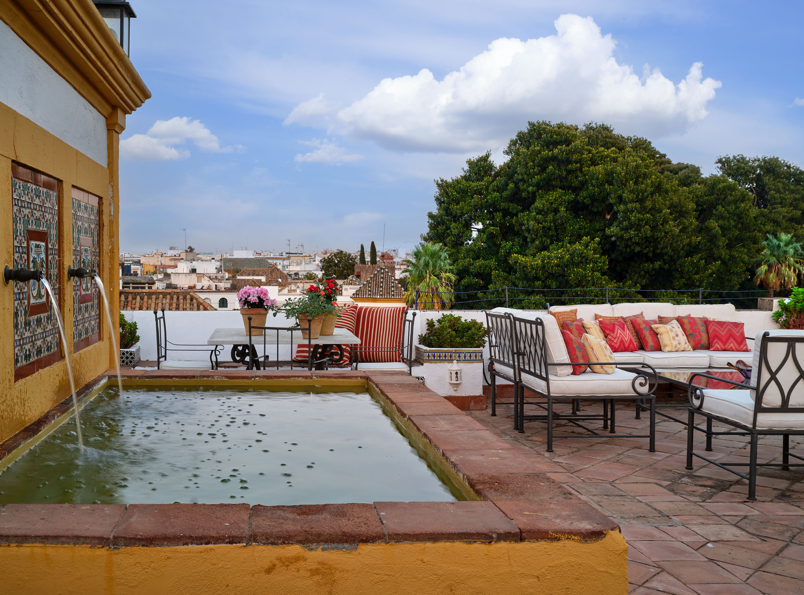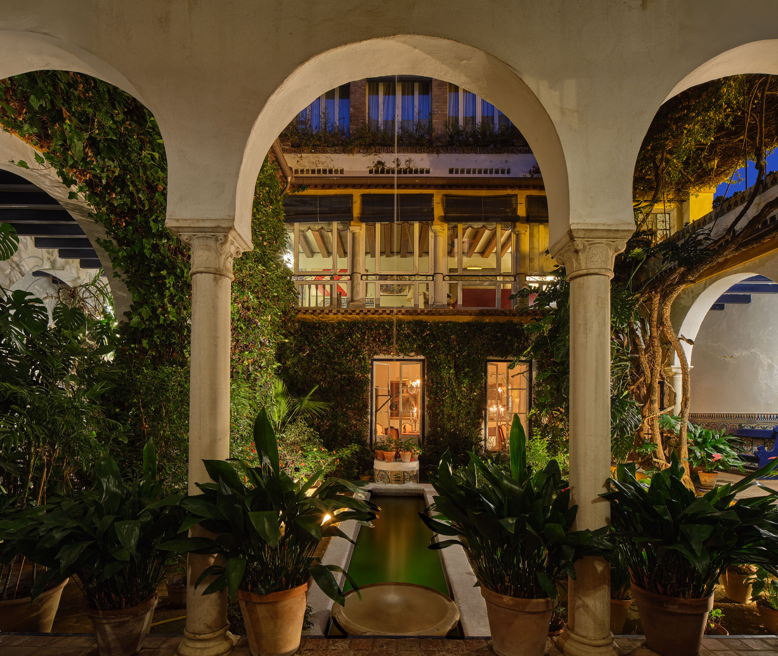 The rooms offer a variety of settings: some open onto the lush Andalusian courtyard, several with balconies; others face the ancient wall of the Royal Alcázar; and a few enjoy views of the Alcázar Gardens, so close that their light and greenery seem to enter the house.