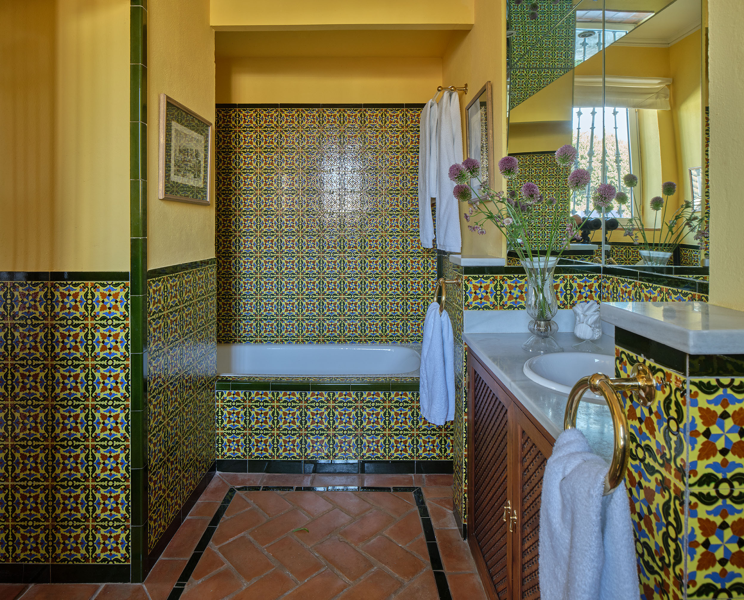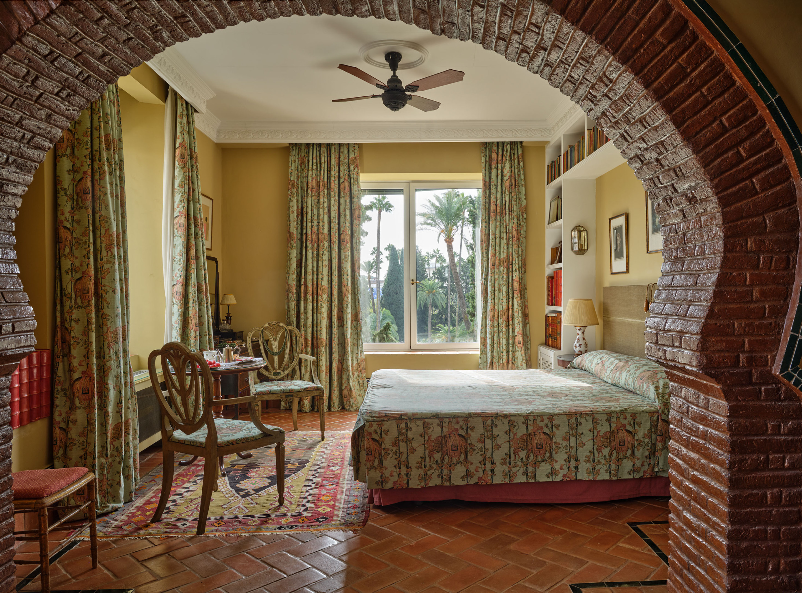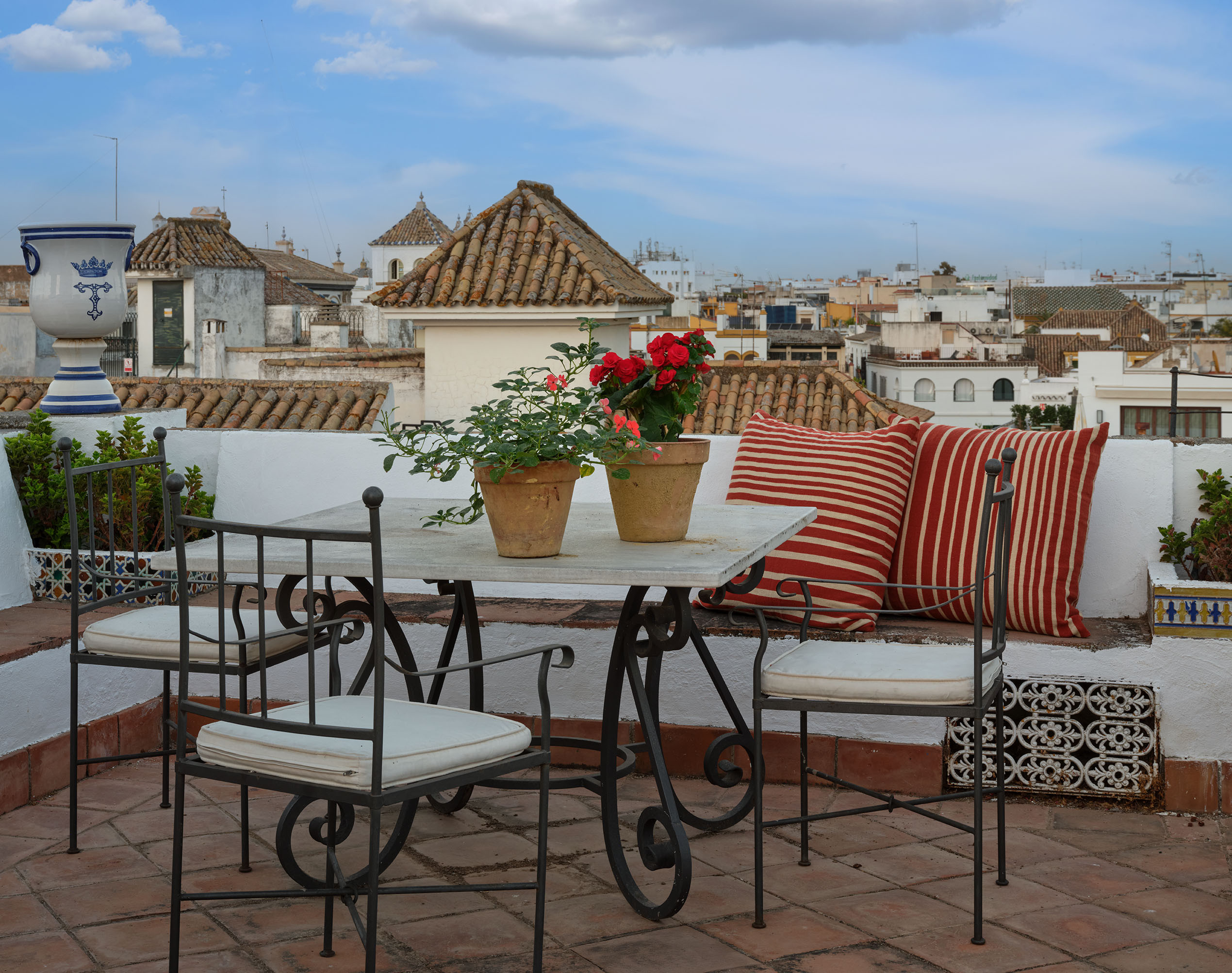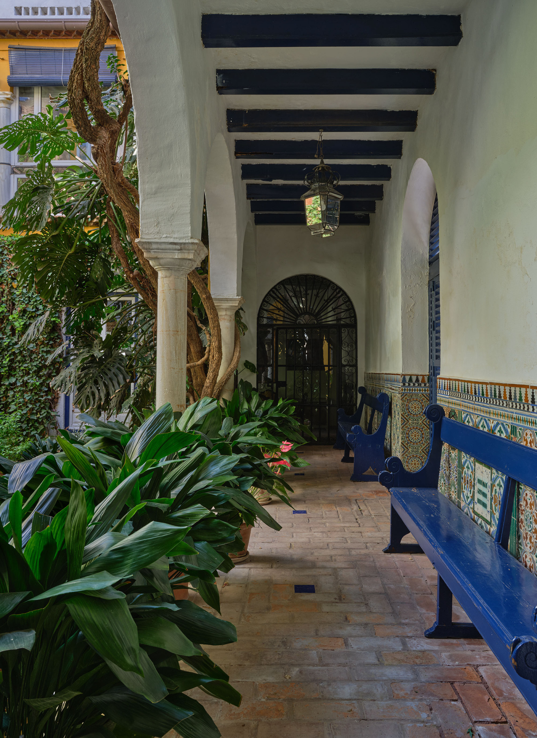 The rooms offer a variety of settings: some open onto the lush Andalusian courtyard, several with balconies; others face the ancient wall of the Royal Alcázar; and a few enjoy views of the Alcázar Gardens, so close that their light and greenery seem to enter the house.